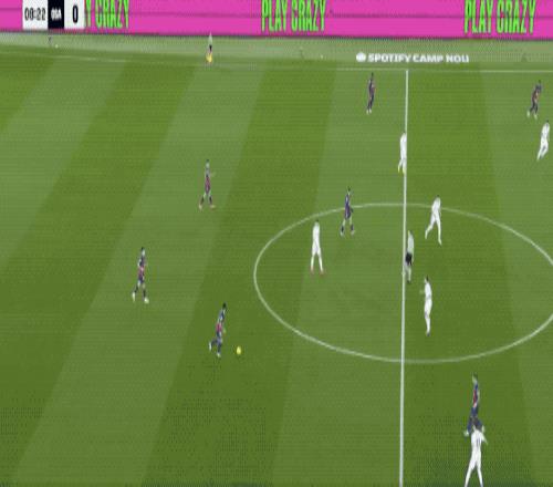 第14分钟,亚马尔原地摆脱送出妙传,费兰·托雷斯拍马赶到,第一时间射门,皮球稍稍高出。
